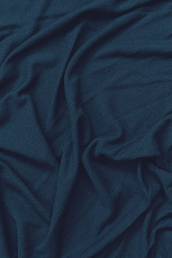 Itāļu vilnas krekls ar poliamīda un elastāna pievienošanu tumši zilā krāsā. Trikotāžas audums ar stingru austu, vidēju biezumu, matētu un elastīgu. Tas ir lieliski piemērots ikdienas apģērbu šūšanai, piemēram, kleitas, svārki, tunikas, blūzes, kā arī viegli džemperi vai jakas.