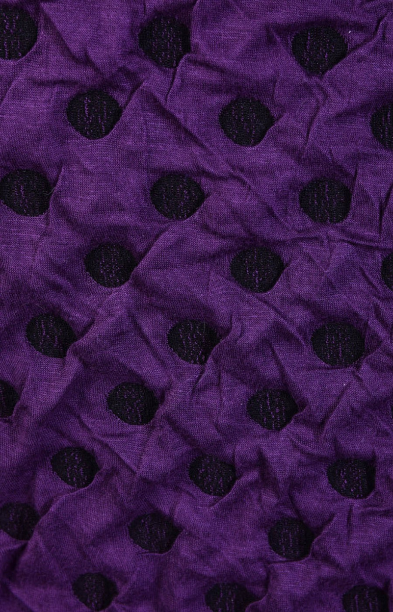 Interesants trikotāžas auduma priekšlikums ar punktiem, saburzīts, divslāņains. Elastīgs, elpojošs audums, ideāli piemērots kleitām vai svārkiem