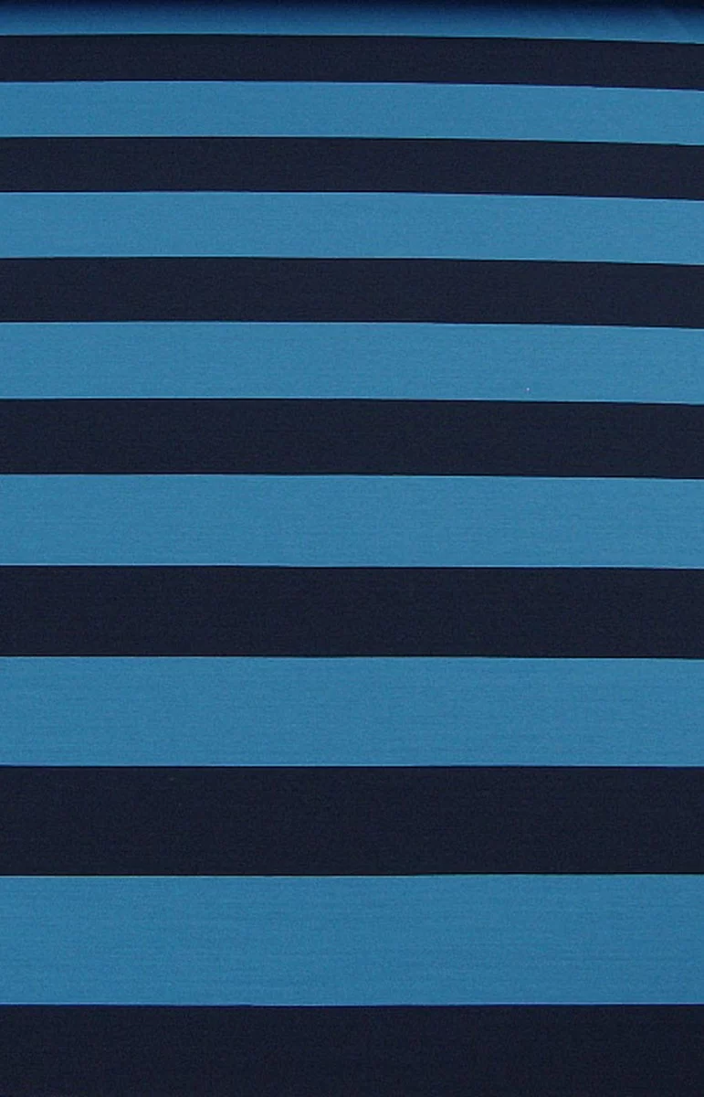 Viskozes trikotāžas audums ar tumši zilām un tirkīza svītrām. To var izmantot, lai šūtu vasaras kleitas, blūzes vai citus tērpus.