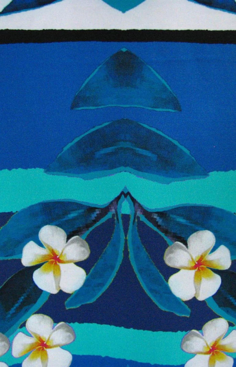 Itāļu likra trikotāžas audums kupona izmērā 135cm*140cm. Ļoti interesants ziedu raksts uz gaiši tumši zila fona.