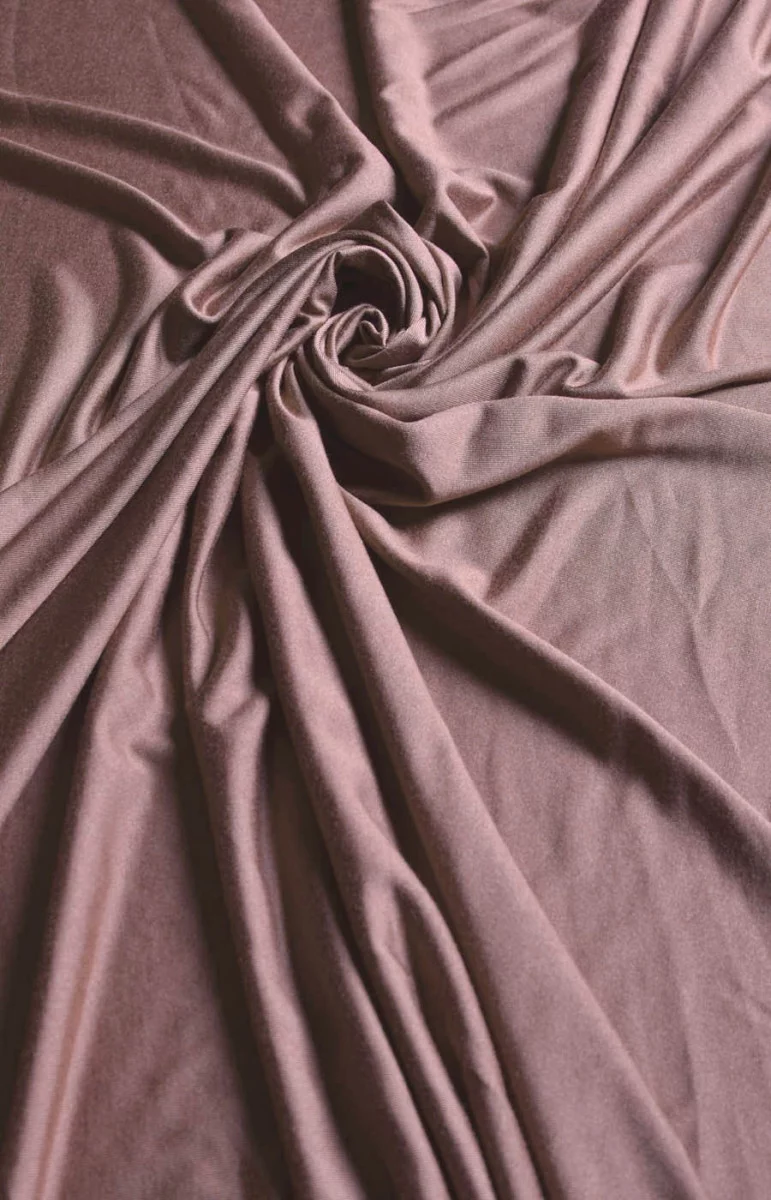Elegants, biezāks, elastīgs viskozes trikotāžas audums tumšā, netīri rozā krāsā kleitām, blūzēm vai plānākiem sporta krekliem.