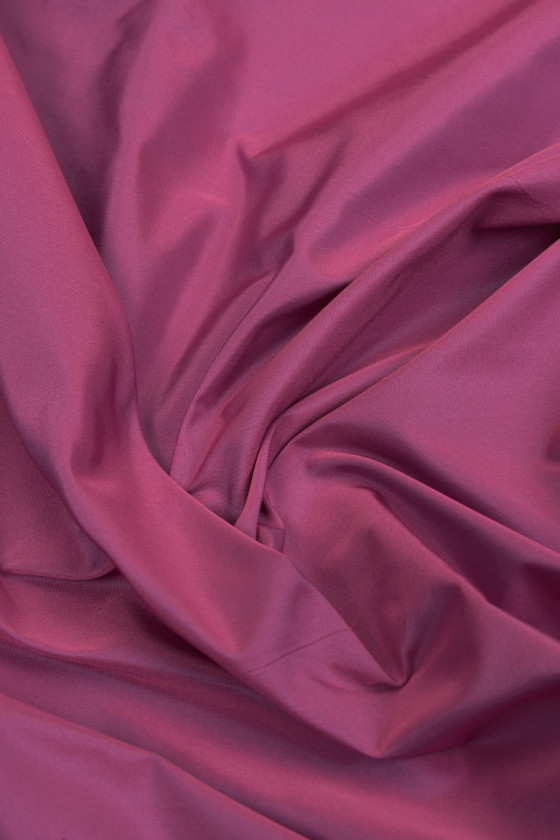 Itāļu poliestera tafta audums, kas austs no divām pavedienu krāsām - rozā un zila, radot divu toņu efektu. Tafts ir plāns, bet stingrs audums, kas pabeigts ar maigu spīdumu. Ideāli piemērots kleitas, blūzes, krekla, svārku šūšanai.