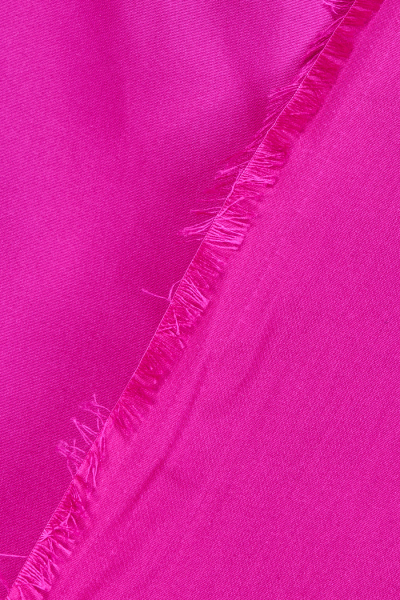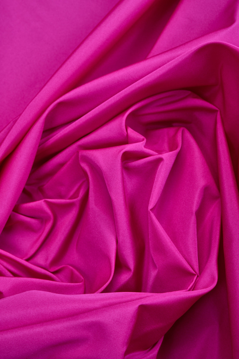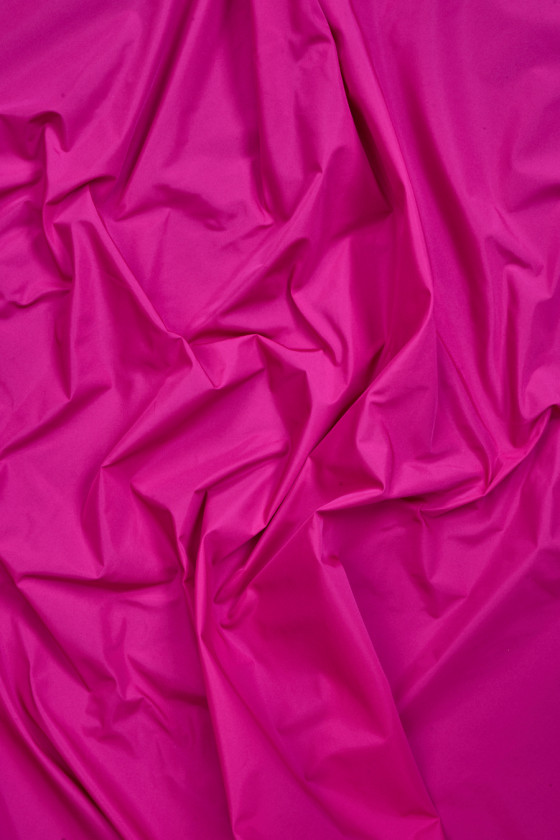 Itāļu fuksijas poliestera tafta audums. Tafts ir plāns, bet stingrs audums, kas pabeigts ar maigu spīdumu. Ideāli piemērots kleitas, blūzes, krekla, svārku šūšanai.