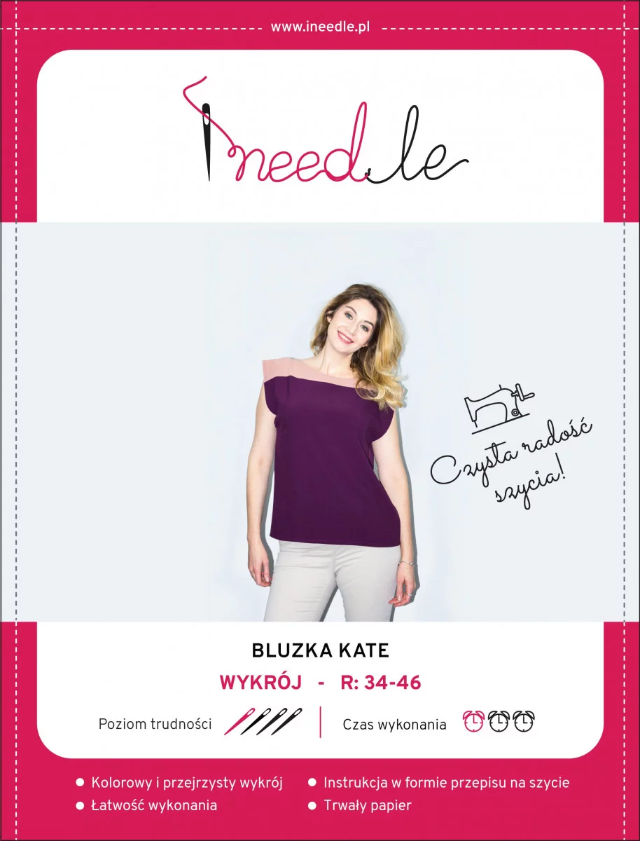Iespēju ir daudz. Jūs varat droši apvienot vienkrāsainu audumu ar rakstainiem audumiem, piešķirot blūzei ikdienas vai elegantāku raksturu. Keitas blūzes modelis ļauj to šūt izmēros no 34 līdz 46.