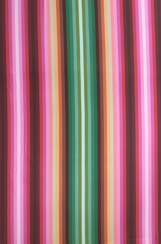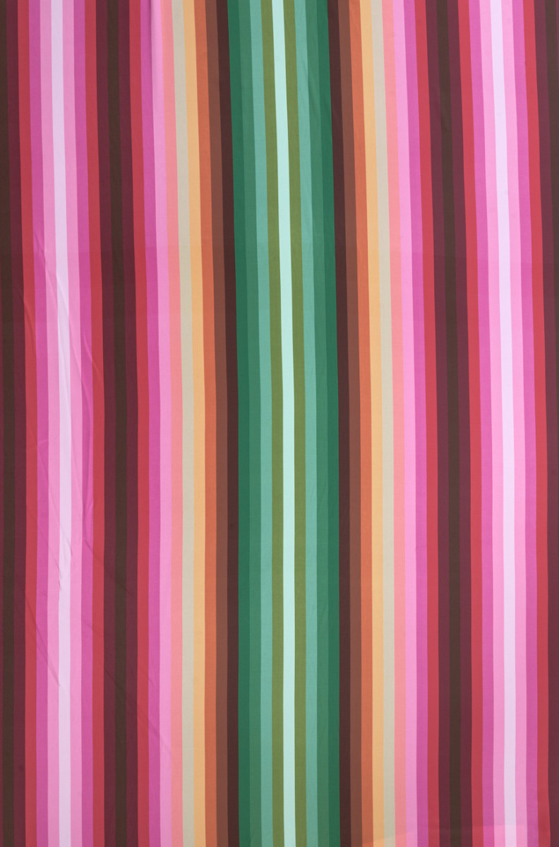 Itāļu 100% zīda kreps ar krāsainām svītrām. Auduma vidus ir izgatavots no zaļām krāsām, dodoties uz malām, tas iet caur brūnām-oranžām krāsām līdz dažādiem rozā toņiem - svītras ir 2,5 cm platas. Audums nāk no pazīstama modes dizainera kolekcijas. Fantastisks piedāvājums trakām personībām, kurām patīk izcelties.