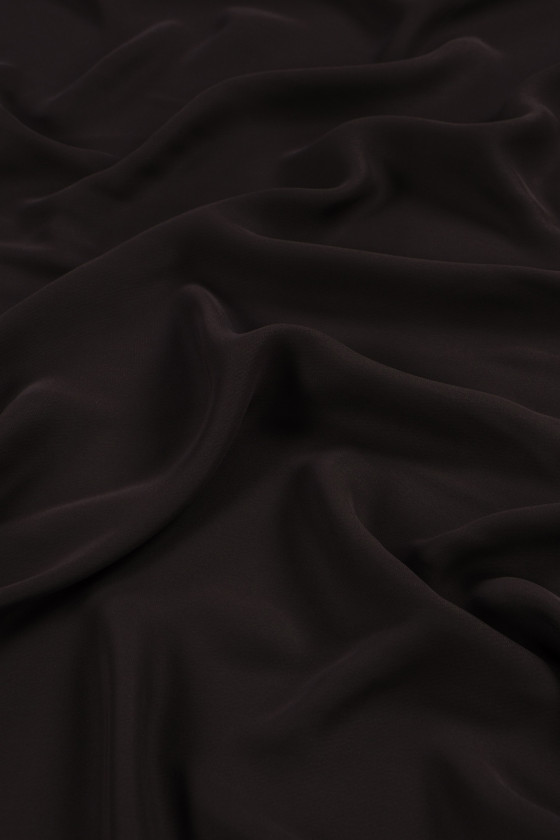 Itāļu 100% viskozes cadi audums brūnā krāsā. Smags, plūstošs, matēts audums ar brīvāku austu (nepieciešama odere). Ideāli piemērots šūšanai, kleitai, blūzei, svārkiem.
