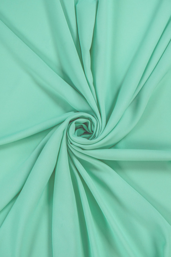 Itāļu kadi viskozes audums akvamarīna krāsā. Plūstošs, elastīgs, smags audums ar brīvāku austu, kas atgādina georgette. Ideāli piemērots kleitas vai svārku šūšanai.