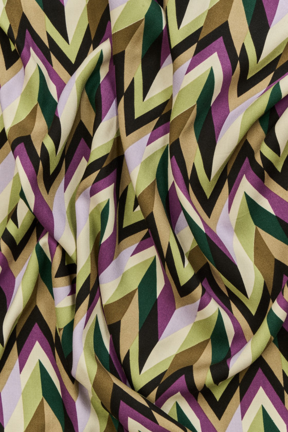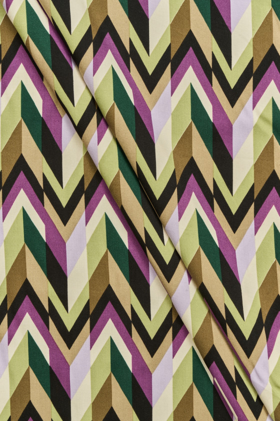 Itāļu audums 100% viskoze ar krāsainu siļķes motīvu. Audums ir pieejams divos krāsu variantos. Tas ir plūstošs, matēts, neelastīgs un patīkams satverams. Tas ir lieliski piemērots blūzēm, kleitām un plūstošām biksēm.