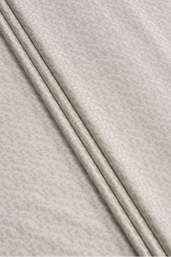 Itāļu žakarda kostīmu audums vieglā, aukstā bēšā krāsā ar nedaudz spīdīgu pavedienu, kas piešķir tai eleganci. Interesants mazu kubiņu motīvs.