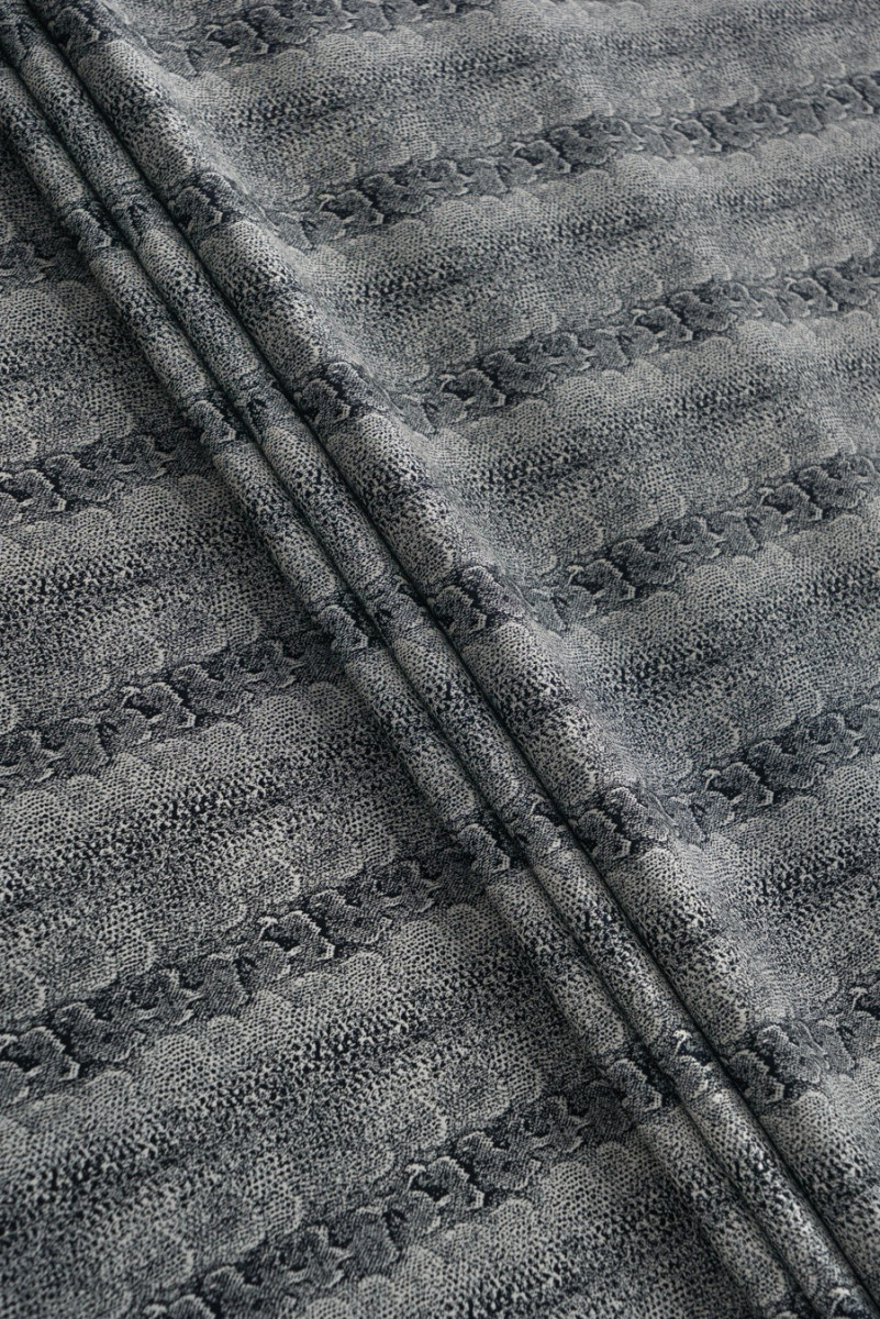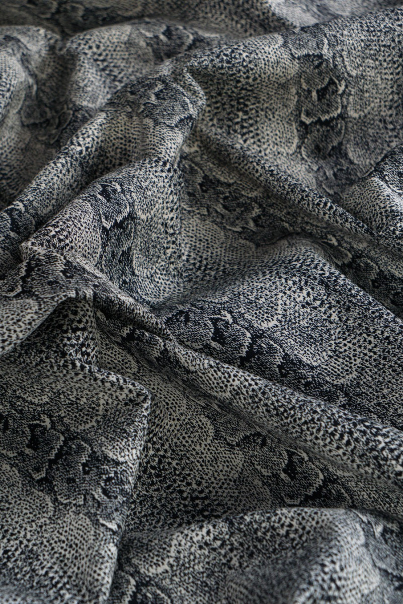 Itāļu žakarda kostīma audums ar čūskādas motīvu melnā un ecru krāsā. Elastīgs, nedaudz stīvs audums - ideāli piemērots kleitas, bikšu, svārku, kostīma šūšanai. Sastāvs: viskoze, elastāns