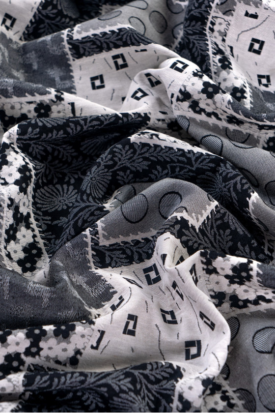 Žakarda audums, kas austs no viskozes un poliestera pavedieniem. Modelis rada savārstījumu, kas šajā sezonā ir modē. Mēs iesakām šūt kleitas, kostīmus, plānus mēteļus vai izmantot tos kā audumu interjera dekorēšanai.