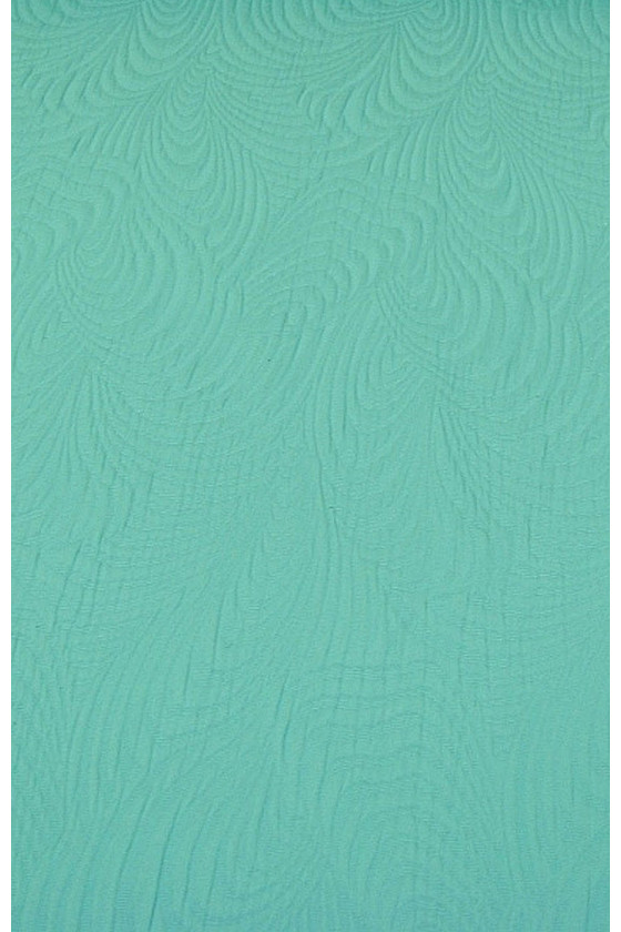 Itāļu žakarda audums gaišā tirkīza krāsā ar reljefu neregulāru viļņu rakstu. Audums nav elastīgs, vidēja biezuma, mīksts. Tas ir ideāli piemērots jakas, kleitas vai pat plānas mēteļa šūšanai.