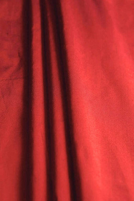Itāļu 100% zīda shantung audums gaiši sarkanā krāsā. Gludāks audums ar smalkiem sabiezējumiem, nedaudz stīvs. Tas ir piemērots gan drēbēm, gan iekšējai apdarei - aizkariem, spilveniem utt. Tikai ķīmiskā tīrīšana!