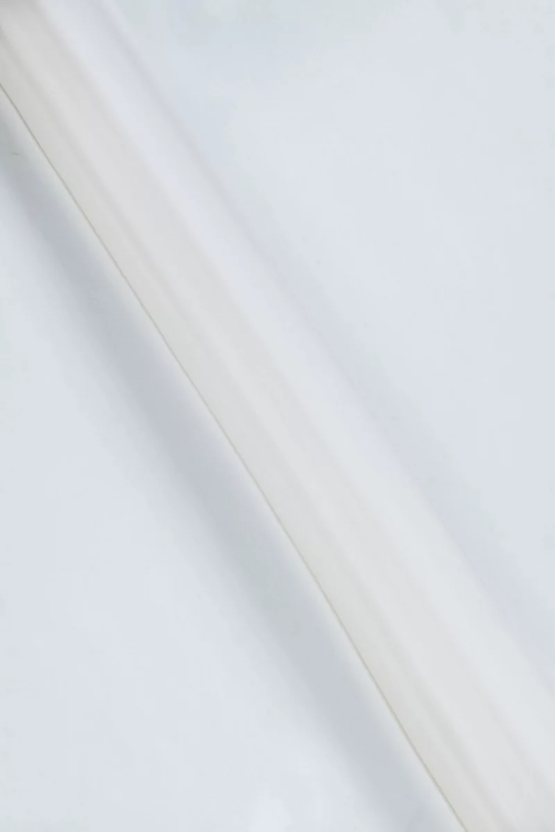 Itāļu 100% zīda organza audums baltā krāsā. Dabīgā zīda organza ir plāns, caurspīdīgs, bet stingrs audums ar maigu spīdumu, kas raksturīgs zīda audumiem.