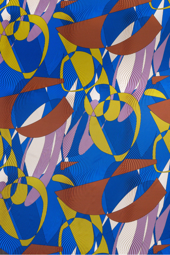 Itāļu zīda kreps ar elastāna maisījumu ar lieliem ģeometriskiem rakstiem rudzupuķu, sinepju un brūnā krāsā. Zīda kreps ir smalks, plāns, daļēji matēts audums.