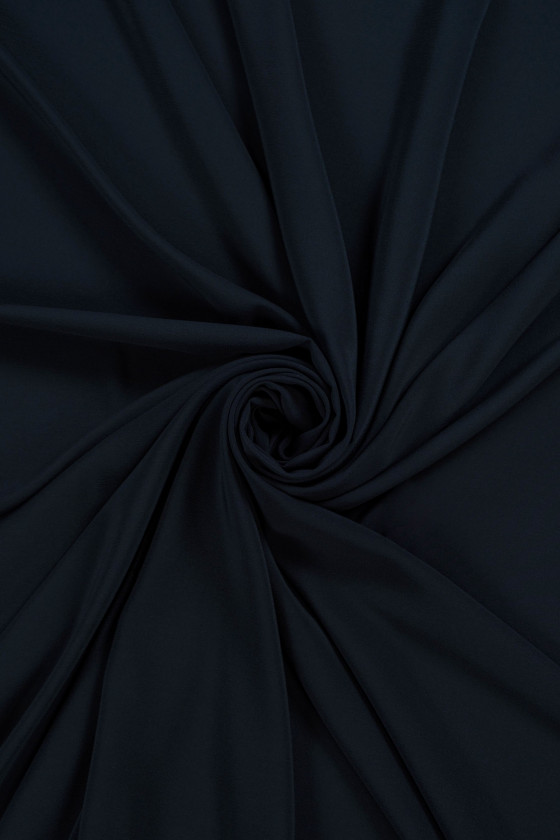 Itāļu kreps 100% zīds ļoti tumši tumši zilā krāsā. Zīda kreps ir maigs, plāns, daļēji matēts audums ar graudainu struktūru. Tas ir mīksts un ļoti labi pieguļ. To var izmantot, lai uzburtu gaisīgas kleitas, smalkas blūzes, svārkus, šalles, šalles.