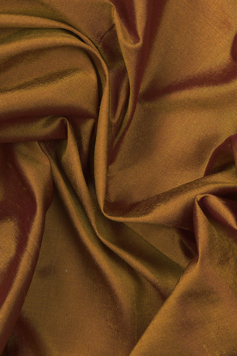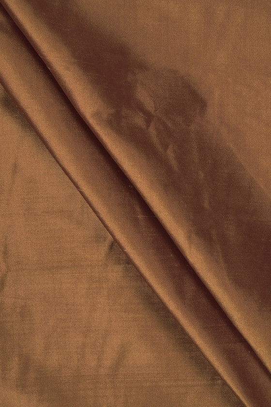 Itāļu 100% zīda shantong audums, austs no divu krāsu pavedieniem: sinepēm un bordo, kas rada divu toņu efektu. Gludāks audums ar nelieliem sabiezējumiem.