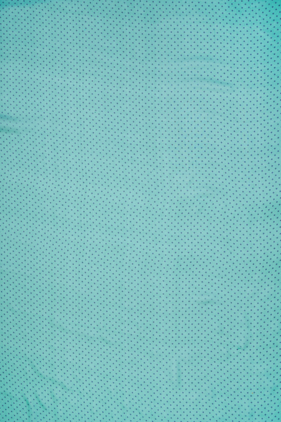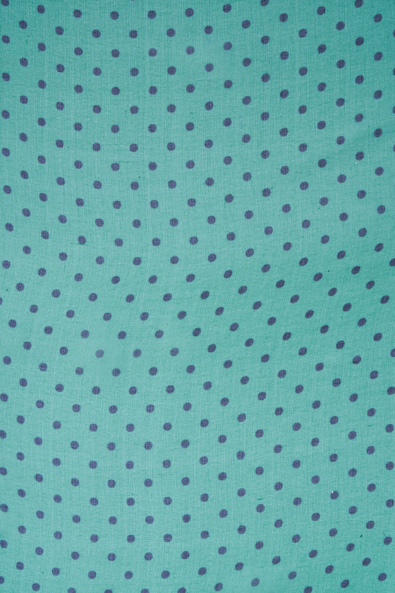 Itāļu muslīns 100% zīds zaļā krāsā ar blīvi sakārtotiem melniem punktiem ar diametru 0,3 cm. Skaists piedāvājums cilvēkiem, kuriem patīk mūžīgi raksti smalkās, tumšās krāsās.