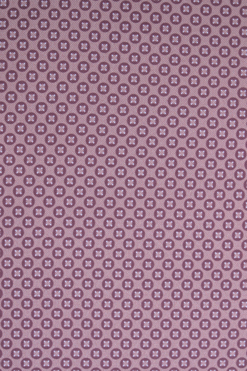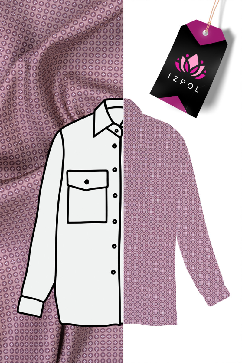 Itāļu 100% zīda sarža audums netīri rozā krāsā ar smalku rakstu. Ļoti jauks, mazs raksts (0,4cm) bordo krāsā ar laša pildījumu. Tas atgādina polkas punktus pēc formas un ir ļoti blīvi izvietots. Audums ir plāns, bet necaurspīdīgs ar smalku pinuma austu, lieliski piemērots krekla, kleitas vai šalles šūšanai. Fantastisks piedāvājums mazu rakstu faniem vājās krāsās.