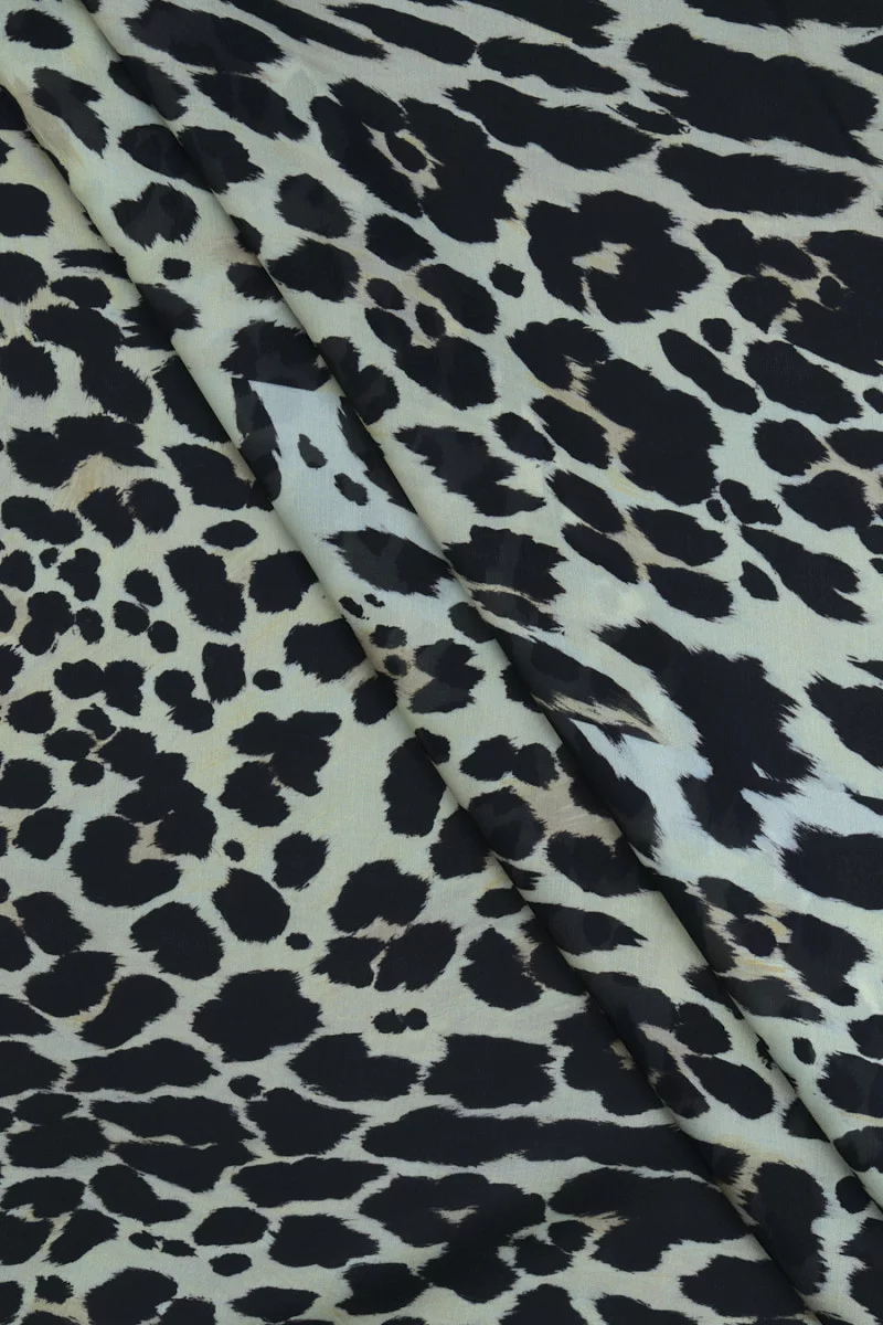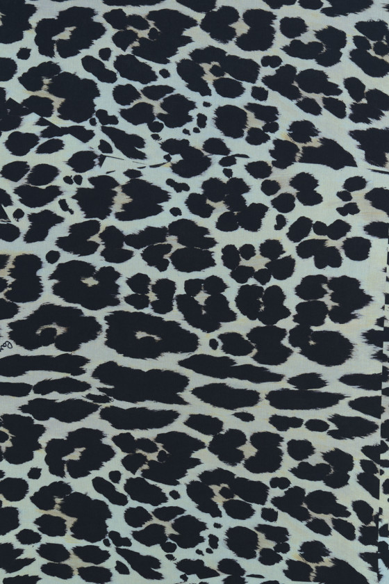 Itāļu muslīns 100% zīds kupona izmērā 130 cm* 120 cm. Klasiska leoparda apdruka bēšā, brūnā un melnā krāsā. Audums dizaineru apģērbu faniem, jo tas ir parakstīts ar pazīstama modes dizainera vārdu. Audums ir 140 cm plats un pats raksts ir 120 cm.