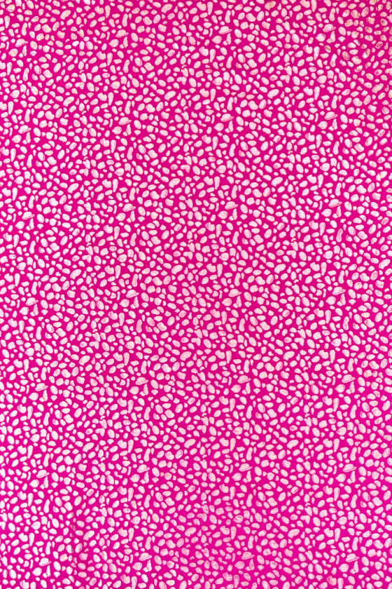 Itāļu zīda šifons intensīvā rozā krāsā, blīvi dekorēts ar zelta plankumiem. Audums ir viegls, gaisīgs, neelastīgs un nedaudz caurspīdīgs. Brīnišķīgs piedāvājums izveidot unikālu kleitu, gaisīgus svārkus vai kreklu.