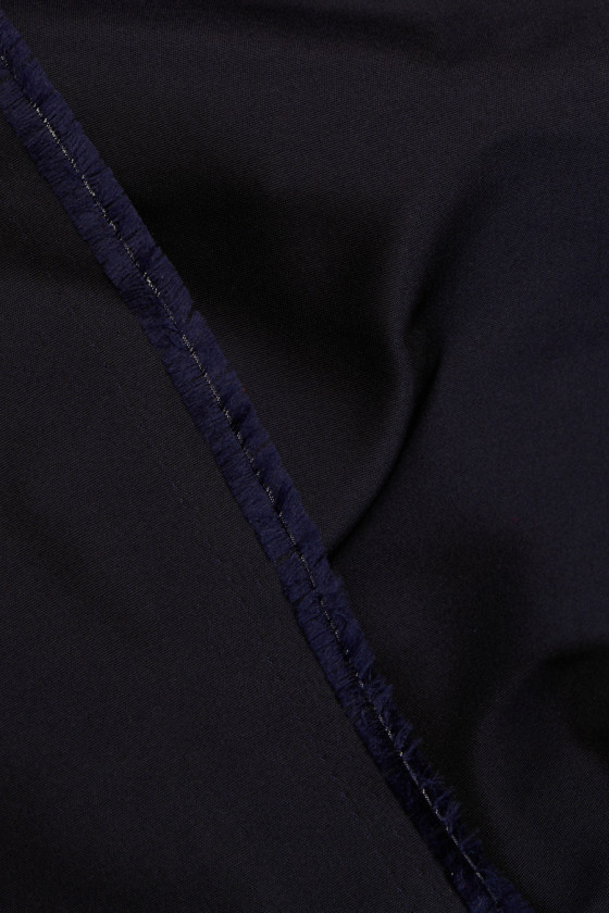 Itāļu 100% zīda tafta audums tumši tumši zilā krāsā. Zīda tafts ir plāns, nedaudz stīvs audums ar maigu spīdumu, kas raksturīgs zīda audumiem. Ideāli piemērots kleitas, blūzes, krekla, svārku šūšanai.