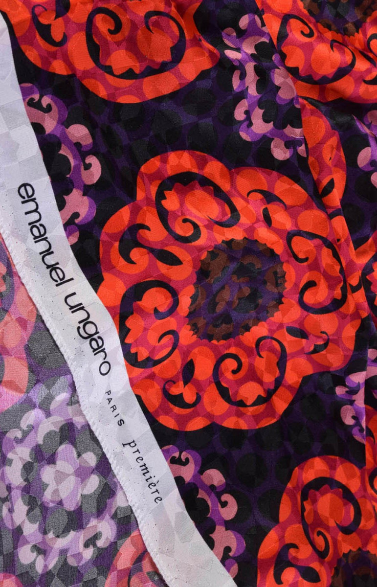 Skaists žakarda zīds. Plāns, neelastīgs, maigs. Necaurspīdīgs audums. Ideāli piemērots kleitām un blūzēm.