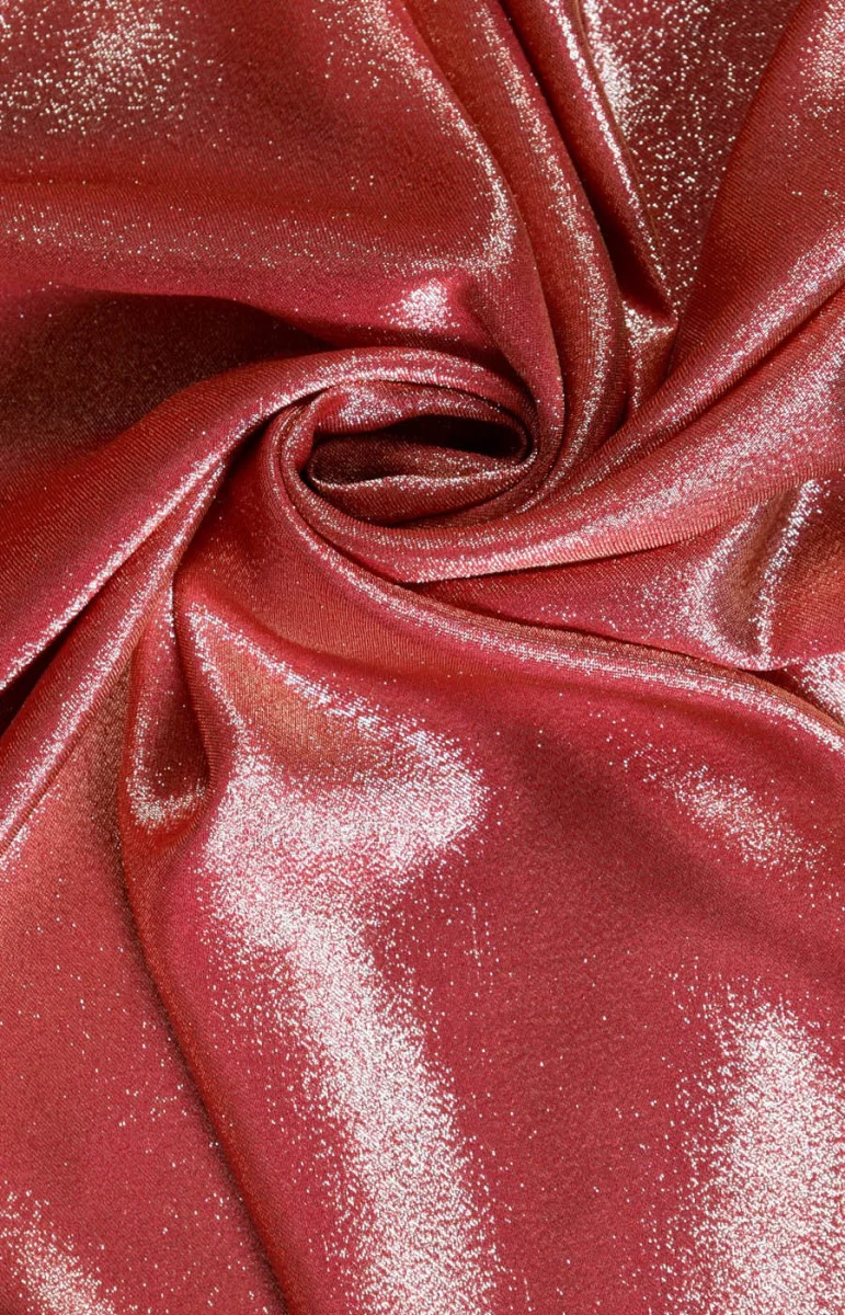 Skaists, maigs, ļoti gaisīgs audums no dabīgā zīda un lurex. Audums nav elastīgs. Tas skaisti mirdz avārijas gaismas ietekmē. Lieliski piemērots vasaras vakara tērpiem. Sarkana krāsa ar zelta pavedienu.