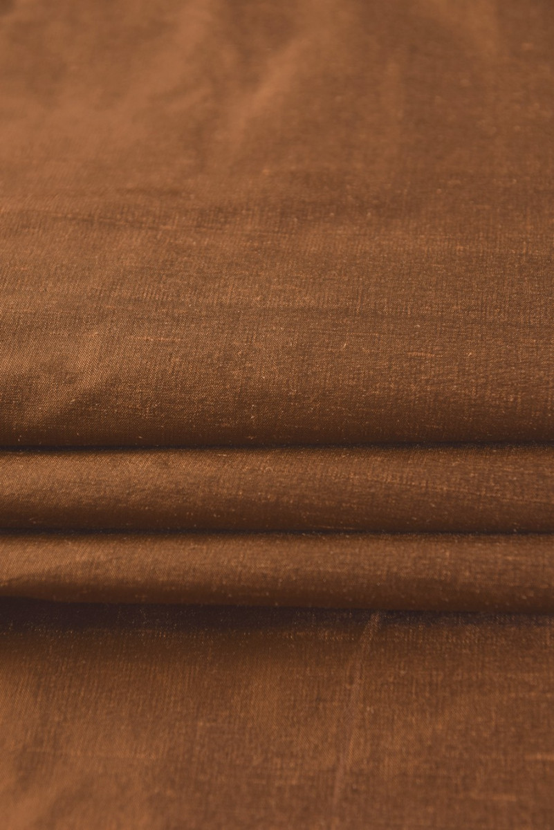 Kahetooniline shantung siid (must ja beež niit) pruunis (piimašokolaad), millel on sile struktuur, mis meenutab taftat, on lõdvalt kootud kangas, mis on värvitud loomulikult. Ainult keemiline puhastus!