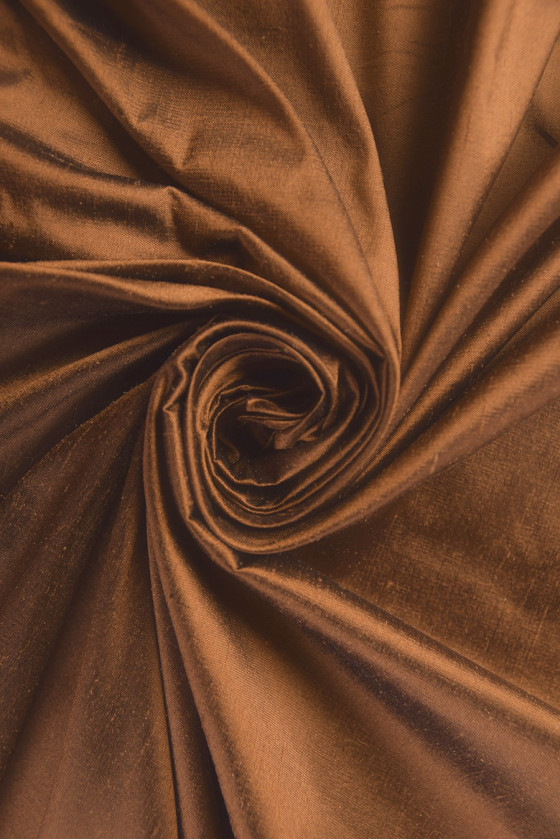 Kahetooniline shantung siid (must ja beež niit) pruunis (piimašokolaad), millel on sile struktuur, mis meenutab taftat, on lõdvalt kootud kangas, mis on värvitud loomulikult. Sellel on veidi jäik plastkonstruktsioon. See sobib nii riietele kui ka sisekujundusele - kardinad, padjad jne. Ainult keemiline puhastus!