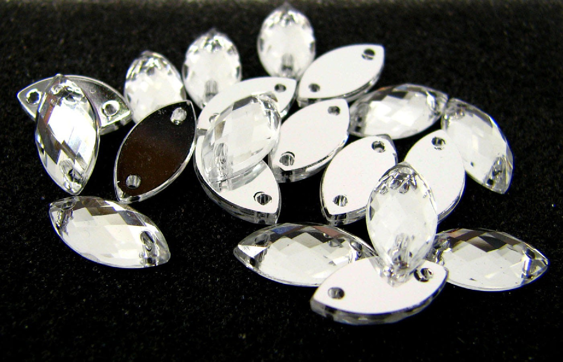 Kamienky v tvare elipsy, ktoré sa majú prišiť na imitáciu prírodného kryštálu. Rozmer cca 12 mm.