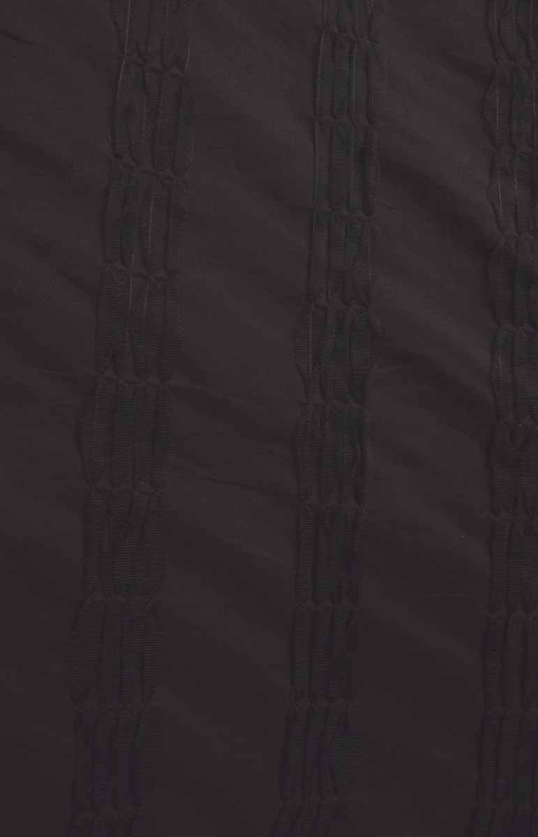 Zaujímavý návrh bavlneného batistu prešitého tylovými stuhami. Odporúčame vám šiť blúzky, šaty alebo sukne. Čierny.