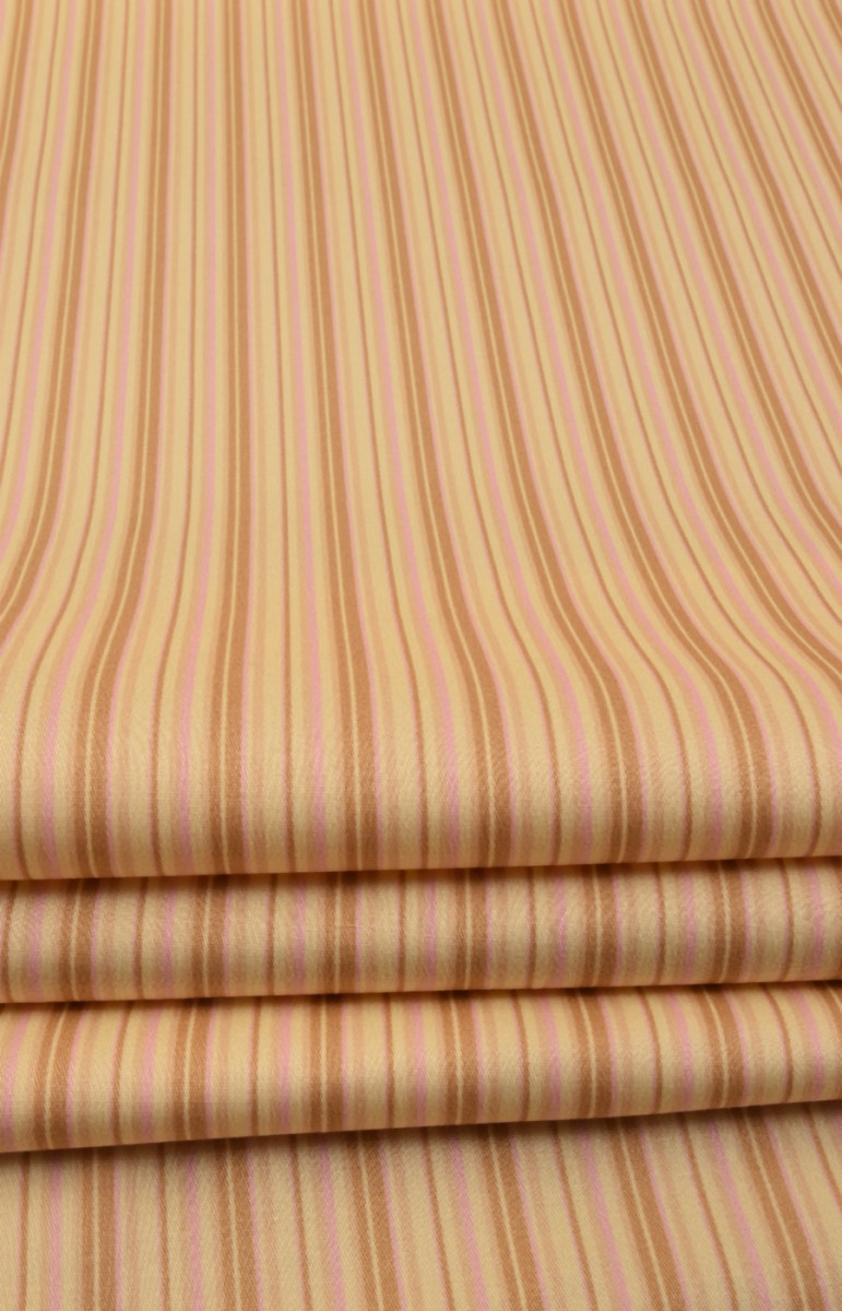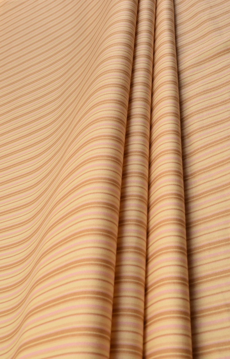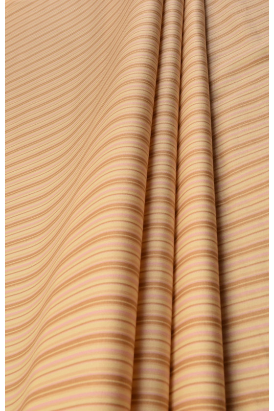 Stretch bavlna je prírodná tkanina, ktorá sa dá použiť na šitie priliehavejšieho letného oblečenia. Pridanie elastanu dodatočne stabilizuje tkaninu. Farby : Béžové a ružové pruhy na svetložltom pozadí