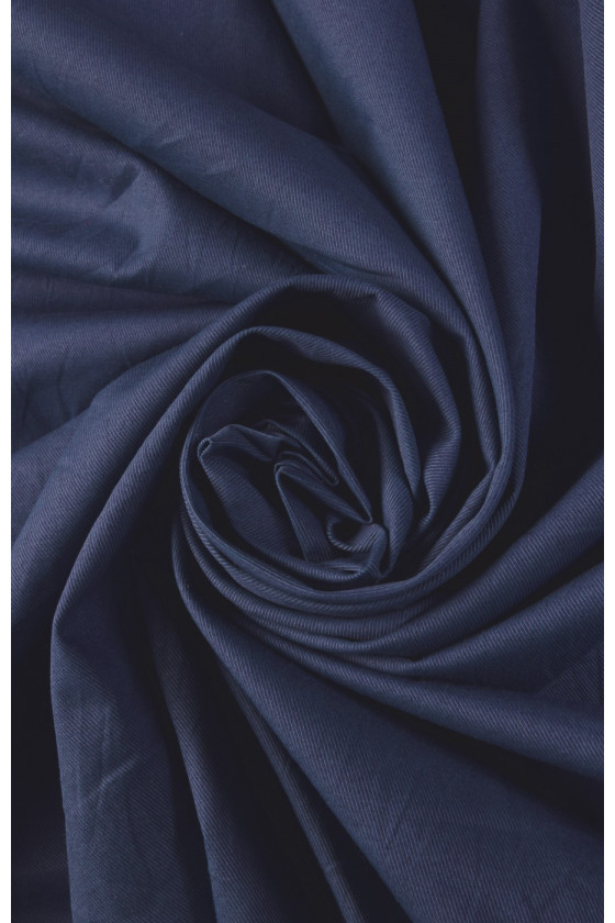 Talianska bavlnená látka v tmavomodrej farbe. Elastická, tuhá tkanina s keprovou väzbou - pripomína džínsovú tkaninu.