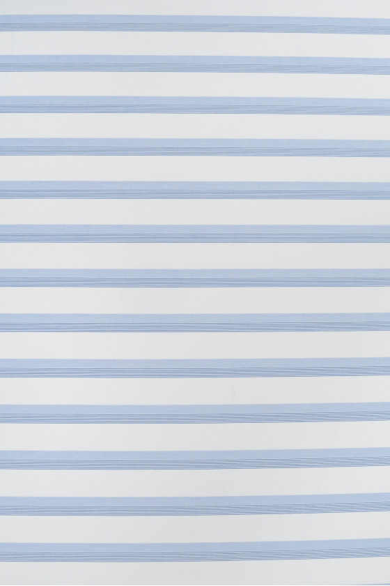 Talianska bavlnená košeľa v krémovej farbe s motívom modrých pruhov, široká 2 cm. Neelastická, mierne tuhá látka - ideálna na šitie košele, blúzky, šiat.