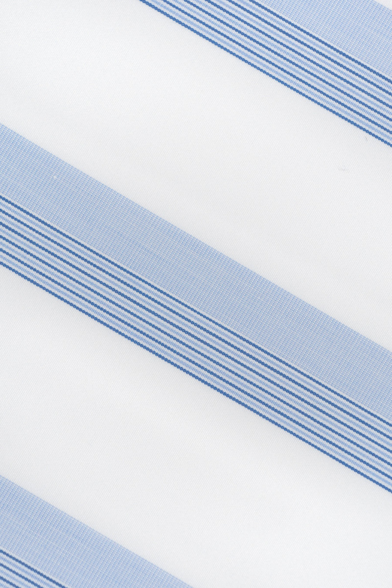 Talianska bavlnená košeľa v krémovej farbe s motívom modrých pruhov, široká 2 cm.