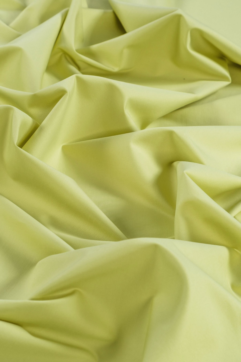 Talianska bavlnená tkanina s prídavkom elastanu vo svetlozelenej farbe (limetkovo zelená). Elastická, mierne tuhá tkanina s jemným leskom.