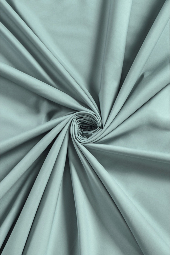 Talianska bavlnená tkanina s prídavkom elastanu v šedozelenej farbe. Elastická tkanina strednej hrúbky a hladkej, jemne lesklej väzby určená na šitie šiat, sukne alebo nohavíc. Prírodná tkanina veľmi dobrej kvality, prídavok elastanu uľahčuje používanie a menej sa krčí. Nenahraditeľná látka na jar a v lete.