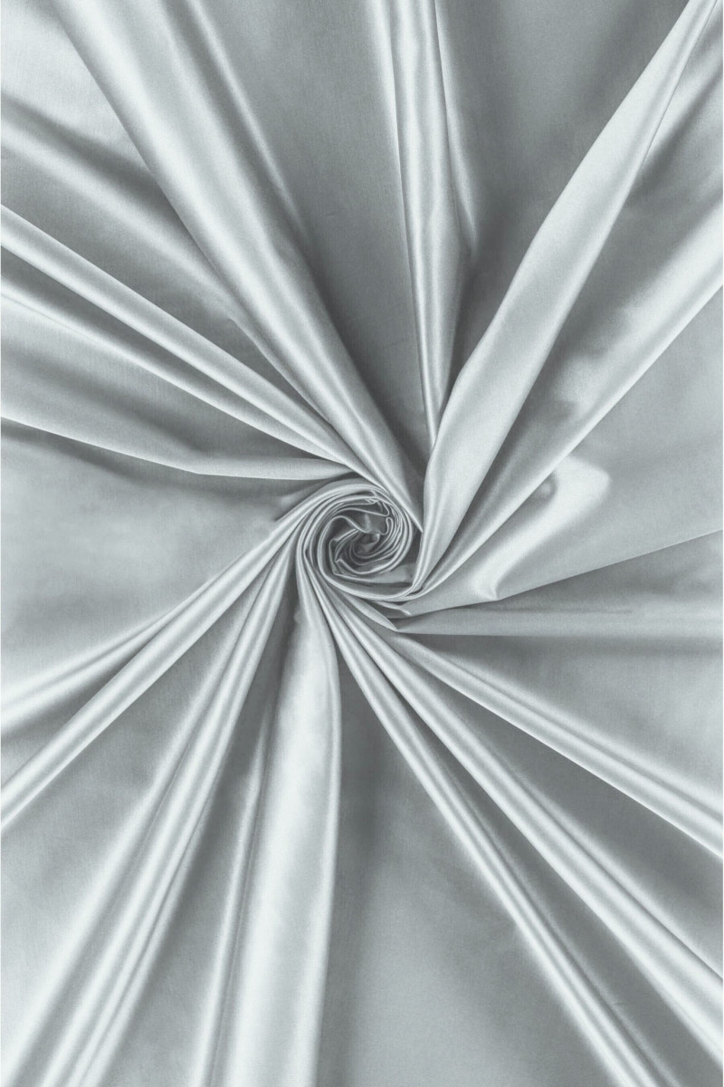Talianska bavlnená tkanina s prídavkom polyesteru a elastanu v šedej a striebornej farbe. Elastická tkanina strednej hrúbky a hladkej saténovej väzby určená na šitie šiat, sukne alebo nohavíc. Prírodná tkanina veľmi dobrej kvality, prídavok polyesteru a elastanu robí pohodlnejšie na používanie a menej sa krčí. Nenahraditeľná látka na jar a v lete.