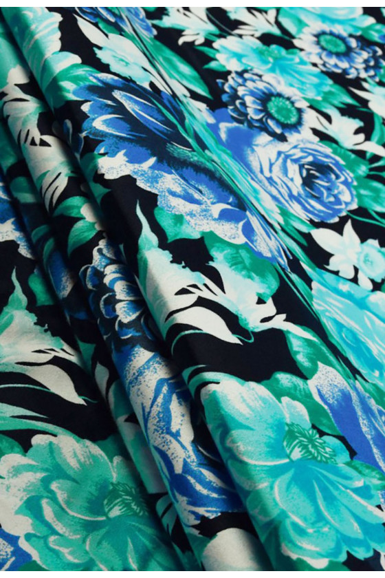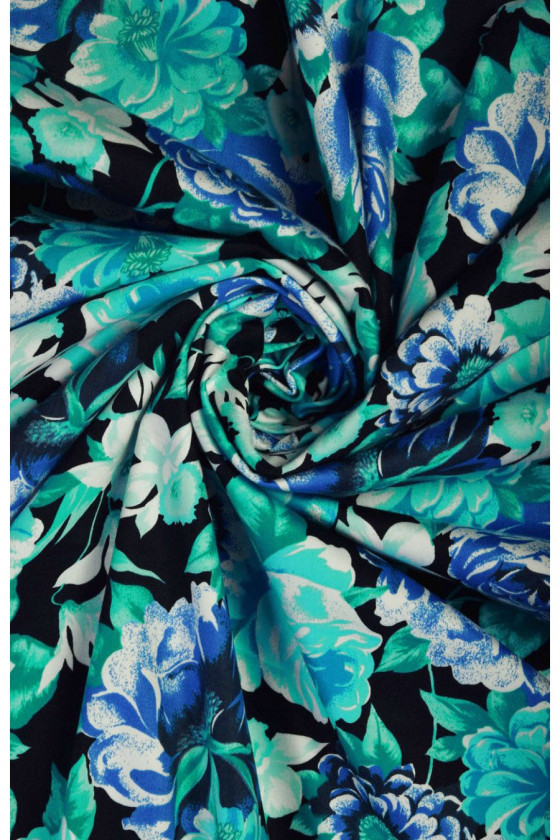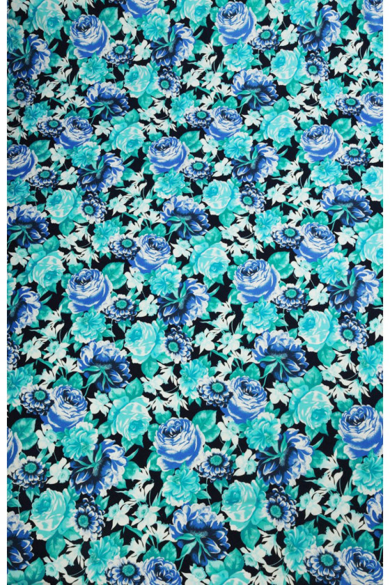 Bavlna mierne elastická s kvetinovým vzorom. Stredne hrubá tkanina. Nepriehľadná tkanina. Ideálne pre nohavice, sukne, šaty.