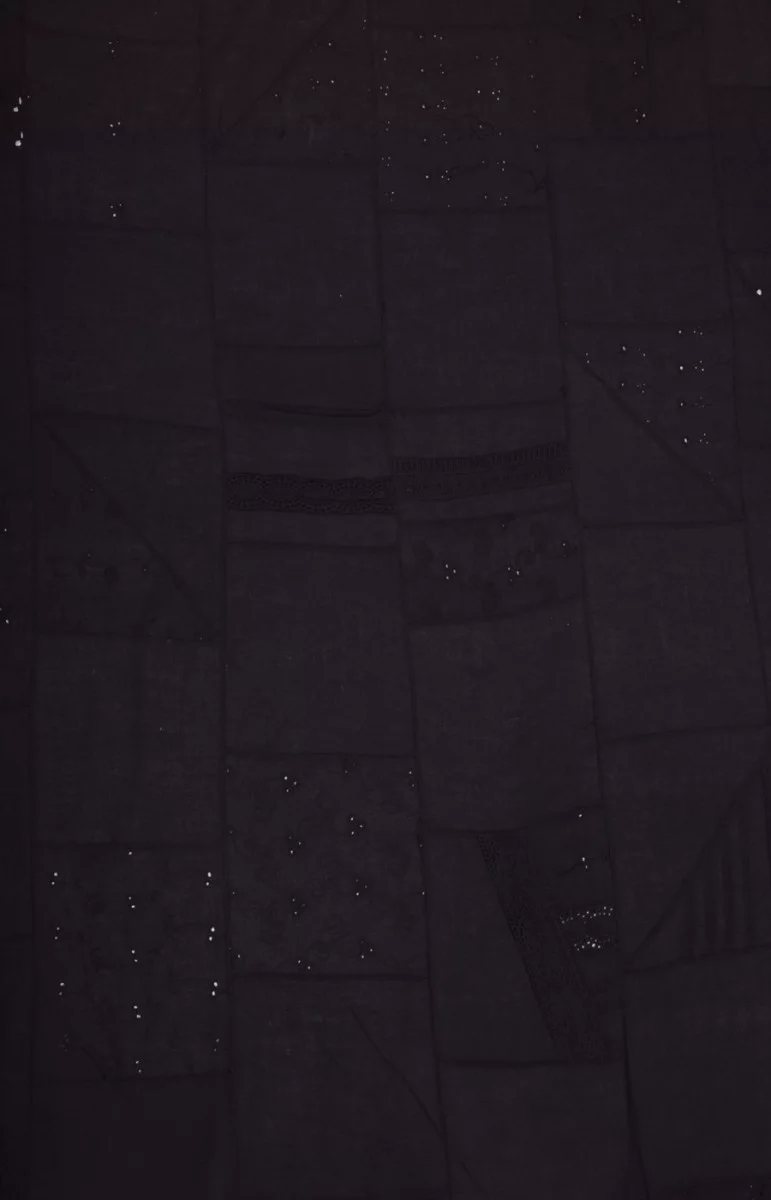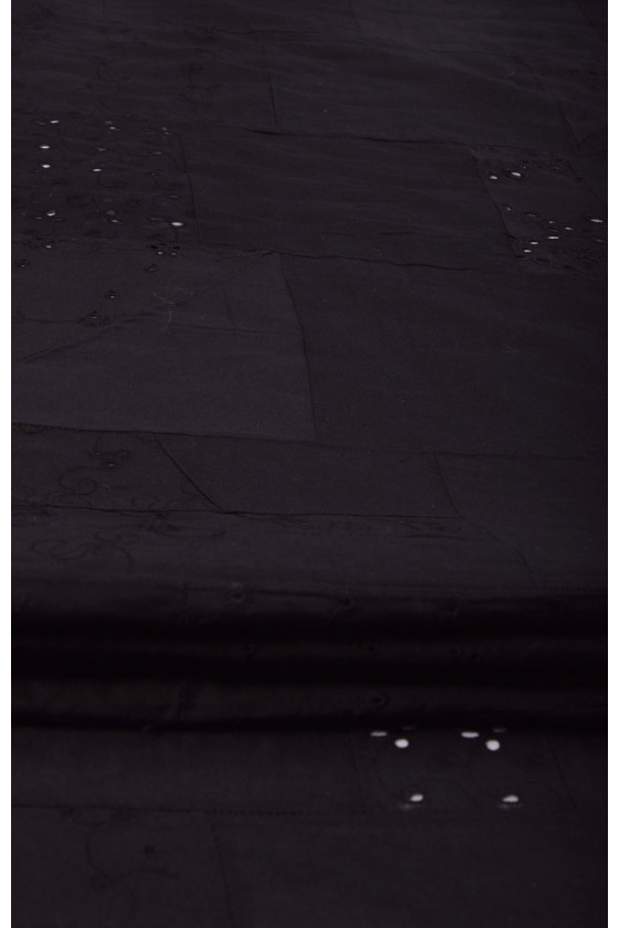 Talianska 100% bavlnená látka s výšivkou Richelieu v čiernej farbe s patchworkovým motívom. Tenká, mierne priehľadná, neelastická látka - ideálna na šitie letných šiat, blúzky alebo sukne.
