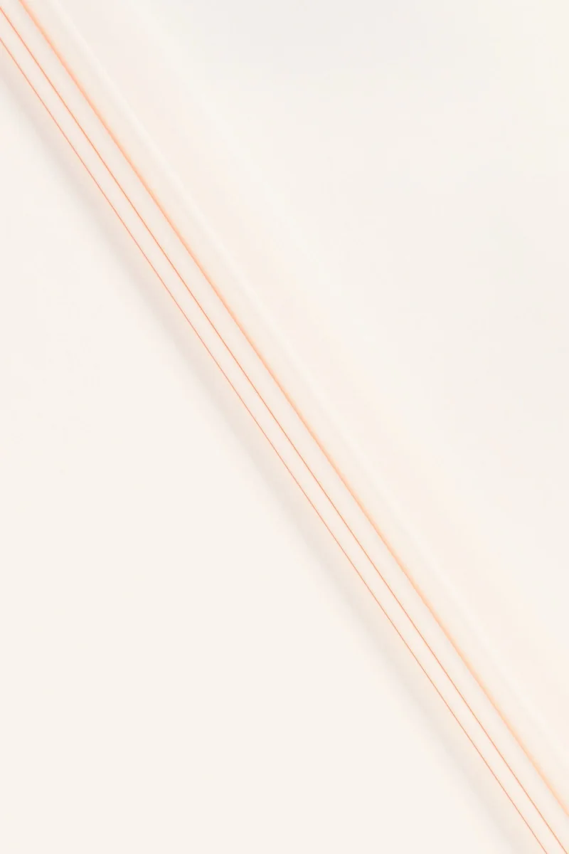Talianska látka cadi šaty vo veľmi svetlej lososovo ružovej farbe. Látka cadi šiat je nepriehľadná, mäsitá, splývavá (ťažká), matná, mierne elastická. Dá sa použiť na šitie šiat, blúzok, sukní, tenkých búnd.