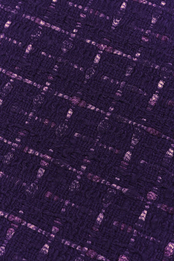 Talianska kostýmová látka chanel vo fialovej farbe. Látka Chanel je veľmi elegantná, mäkká a mäsitá látka, známa svojou originálnou väzbou. Ideálne na šitie kostýmu, saka, saká, sukne alebo tenkého kabáta.