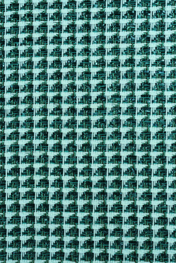 Talianska kostýmová látka chanel v odtieňoch zelenej. Voľne prepletené nite vytvárajú vzor malej kocky, pravidelne tkanej rafie, ktorá sa mierne leskne, dodáva celku jedinečný vzhľad. Látka je nepružná, ľahká, mäkká na zakrývanie, má voľnú väzbu, preto odporúčame podšívku. Materiál pochádza z kolekcie známeho módneho návrhára. Môžete ho použiť na vykúzlenie búnd, šiat, sukní alebo šortiek.