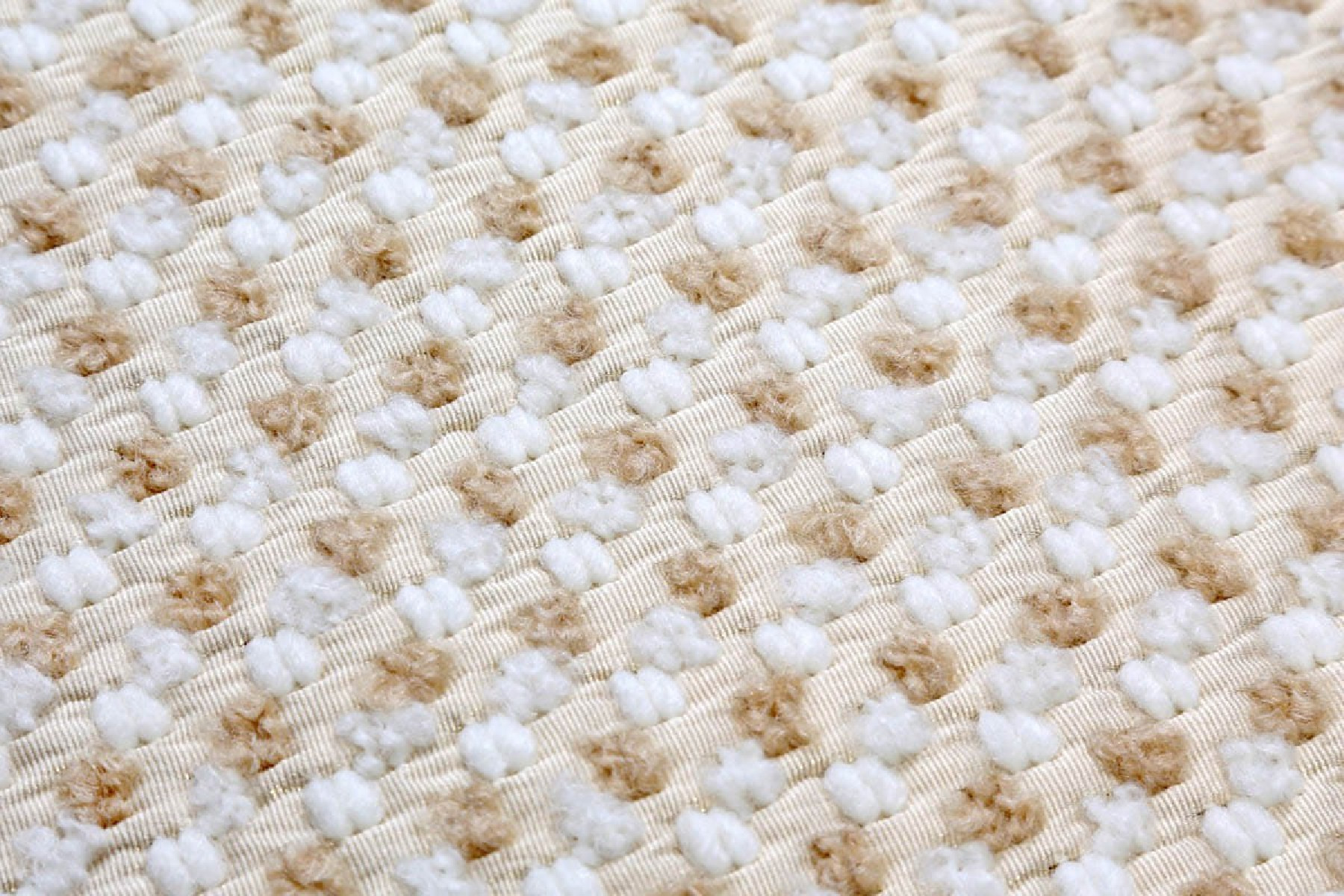 Talianska kostýmová látka chanel. Veľmi zaujímavá kombinácia trblietavej zlatej látky s jemnou grosgrainovou väzbou s béžovými a écru prekladmi, ktoré tvoria malú kocku. Tkanina má konvexnú väzbu, je mierne tuhá a mierne lesklá. Fantastický návrh pre ľudí, ktorí majú radi originálne látky v nadčasových farbách.