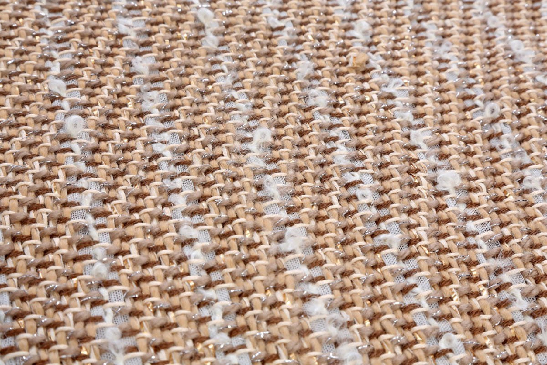 Originálna kostýmová látka chanel pretkaná tylom a lurexovou niťou. Hrubá tkanina na kostýmy, hrubé svetre (kardigánový typ), ktoré sa dajú fantasticky dokončiť strapcami. Látka je tkaná z prírodných vlákien - vlny a hodvábu, ktoré zabezpečia pohodlie nosenia. Odporúčame vybrať podšívku, ktorú nájdete v našom obchode. Materiál nie je elastický.
