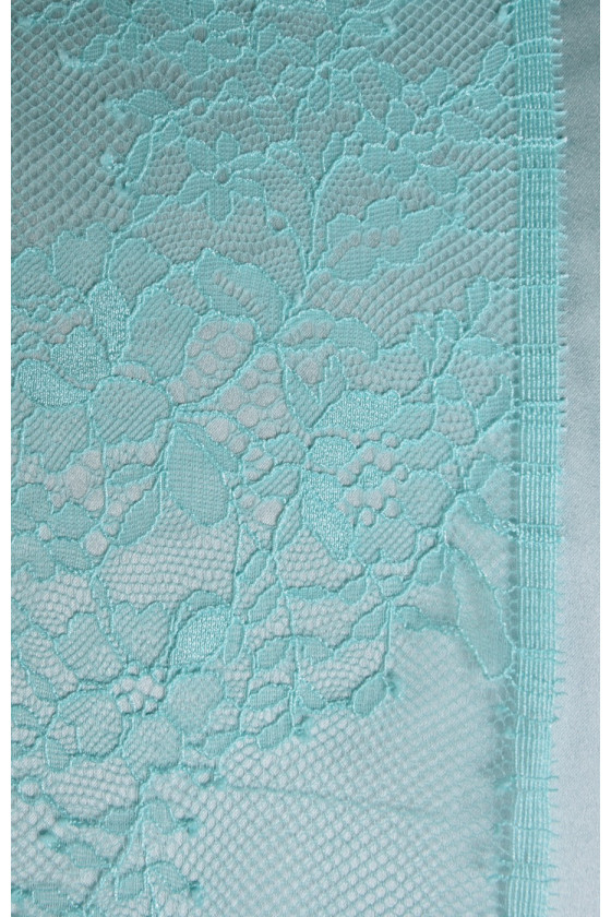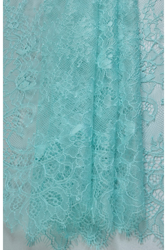 Jemná francúzska čipka vo svetlej tyrkysovej, široká 70 cm. Čipka je mäkká, príjemná na dotyk, pekne sedí. Odporúčame k blúzkam, vložkám, elegantnému spodnému prádlu.