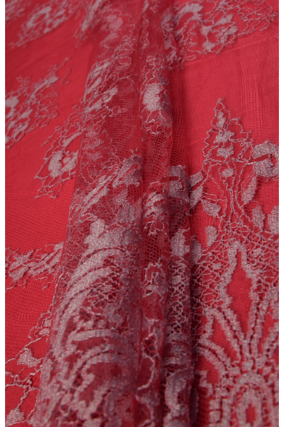 Krásna korunka zakončená z oboch strán červeným a holubičím sivým zubom. Ideálne na blúzky a šaty. Nižšie sú uvedené látky, ktoré farbou zodpovedajú čipke.