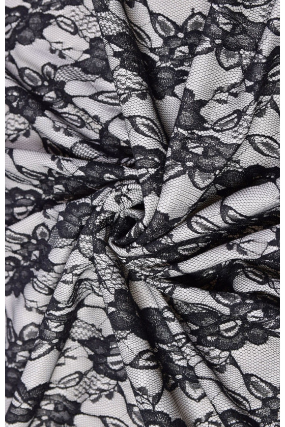 Čipka sa nanáša na elastickú pleteninu, takže nepotrebuje podšívku. Látka je ideálna pre šaty a blúzky.