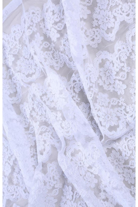 Čipka na svadobné šaty alebo blúzky. Sú na ňom pravidelné prúžky, ktoré sa dajú rezať. Neelastická tkanina.